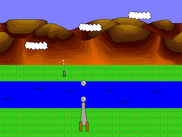 Next up is a two-player game where you control cannons on opposite sides of a river. Whoever lands a hit on the other player first wins! This game was originally created to experiment with pseudo-3D perspectives, but for a tech demo, it’s quite fun! Keep in mind that there is no single player mode in this game. But of course, if you so desire, you can still control both cannons at the same time and play against yourself.